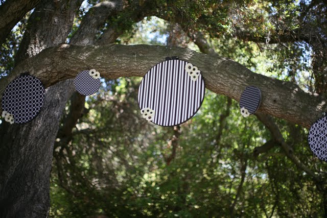 courtney and i have been dying to use embroidery hoops since the end of last year so when we were brainstorming we knew we couldn't pass up the chance to use them for the ceremony...courtney created these using patterned fabrics as well as custom paper from the girls at posh paperie...